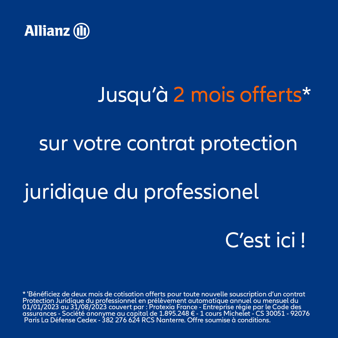 N'hésitez pas, passer nous voir à l'agence (*) pour toute nouvelle souscription d’un contrat Protection Juridique du Professionnel en prélèvement automatique annuel ou mensuel du 01/09/2024 au 31/12/2024 couvert par : Protexia France - Entreprise régie par le Code des assurances - Société anonyme au capital de 1.895.248 € - 1 cours Michelet - CS 30051 - 92076 Paris La Défense Cedex - 382 276 624 RCS Nanterre. Offre soumise à conditions.